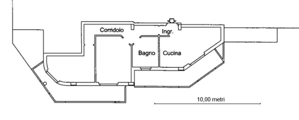 Si accede all’alloggio tramite vano scala e ascensore. L’appartamento ha un’altezza interna di 2,70 ml e risulta così distribuito: una soggiorno-cucina di circa 16,00 mq, un disimpegno, una camera da letto di circa 14,00 mq ed una di circa 12,00 mq, un bagno.