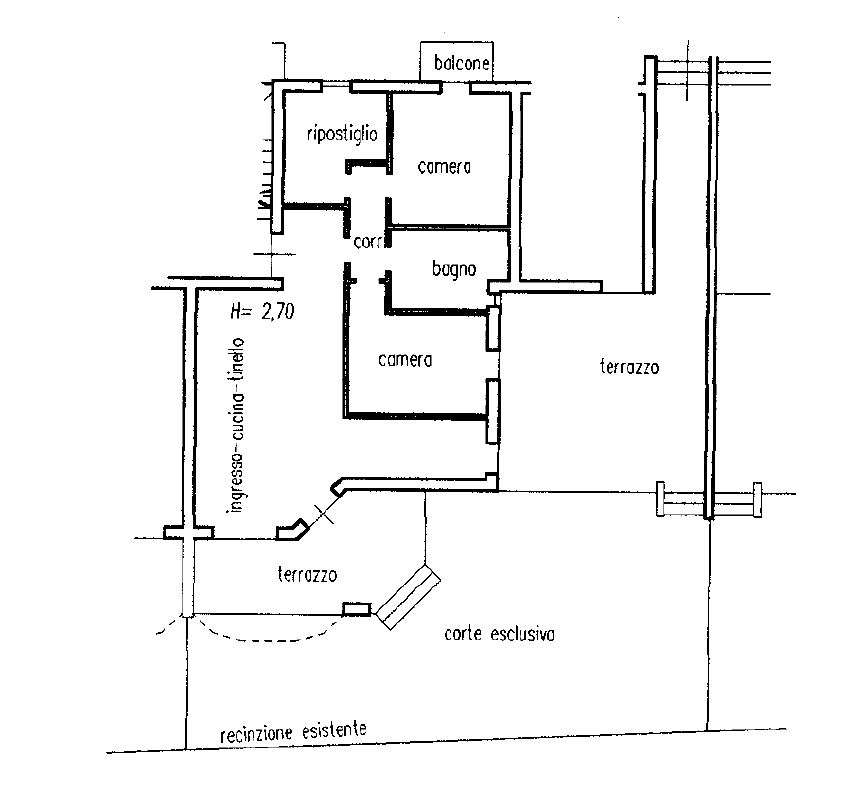 Diritti pari alla piena proprietà di appartamento di civile abitazione posto al piano terra con corte esclusiva e garage, di un fabbricato composto da: ingresso, cucina tinello, due camere, un bagno, un ripostiglio, un corridoio, due terrazzi e una corte esclusiva. In generale il complesso edilizio, con gli annessi e pertinenze, si presenta in buone condizioni di manutenzione. Dai sopralluoghi effettuati l’appartamento e il garage risultano essere in uno stato manutentivo buono. Sussiste corrispondenza fra lo stato dei luoghi e i grafici relativi alla DIA fatto eccezione per lievi variazioni evidenziabili dal confronto, fra gli elaborati progettuali assentiti e grafico stato dei luoghi. Non esiste il certificato energetico (APE) dell'immobile. Si fa presente che i costi del certificato APE sono a carico dell’aggiudicatario.