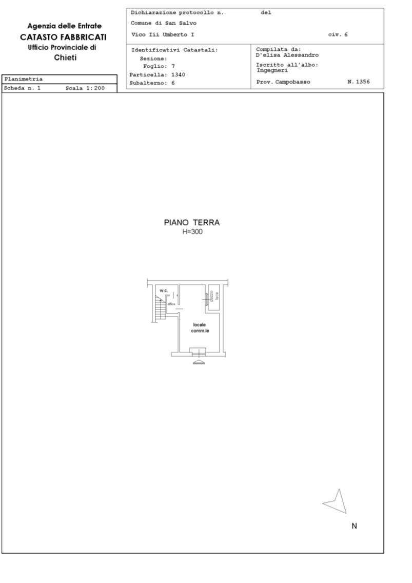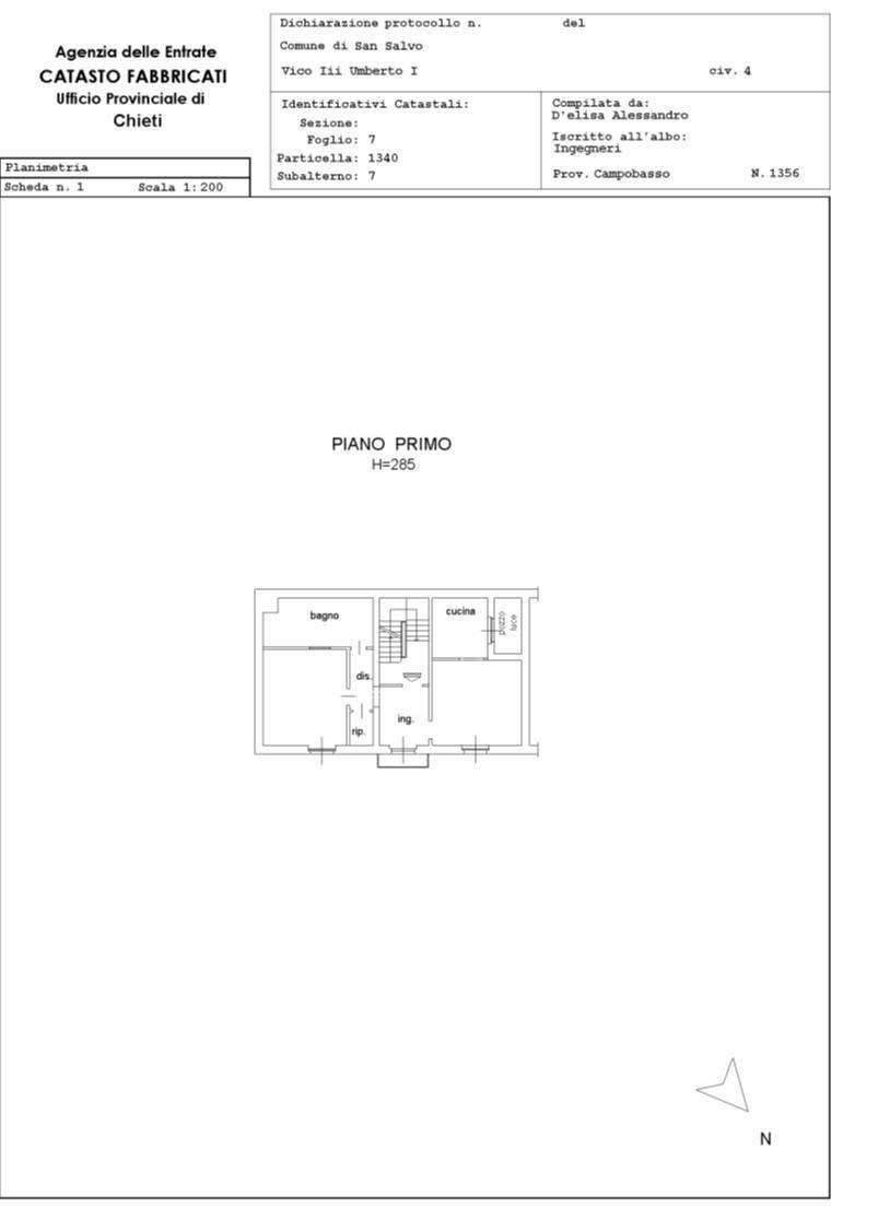 APPARTAMENTO AL PRIMO PIANO Ubicazione: Vico III Corso Umberto I a San Salvo (CH)... La classe energetica dell’immobile risulta pari a F. 2 – LOCALE RIMESSA AL PIANO TERRA Ubicazione: Vico III Corso Umberto I a San Salvo (CH)... Conformità: per detti immobili non si sono riscontrate difformità o irregolarità rispetto ai titoli abilitativi depositati presso il Comune di San Salvo (CH)