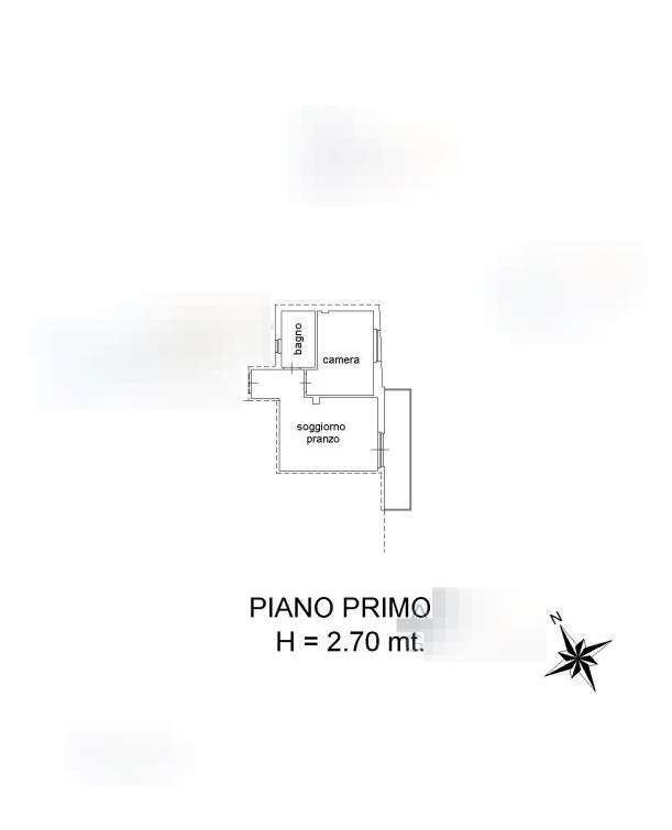 L'unità immobiliare della superficie lorda di mq. 44,00 circa, avente accesso dalla scalinata condominiale è composta da n. 2 locali, un bagno ed un balcone a livello di mq. 5,00 circa.