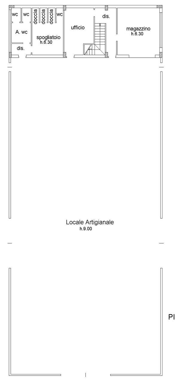 Attualmente il capannone risulta ultimato ed è adibito a magazzino ricambi e ad opificio produttivo per la lavorazione del ferro e della carpenteria pesante. E’ presente un soppalco metallico destinato a magazzino. Sempre a nord del sito vi è un altro corpo di fabbrica di forma rettangolare. Manca la pavimentazione. Sul prospetto sud del fabbricato vi è una tettoia sporgente 3 ml per tutta la lunghezza. L’opificio principale è comunicante con gli uffici al piano secondo sottostrada, con pavimenti in ceramica e finiture di livello sufficiente.