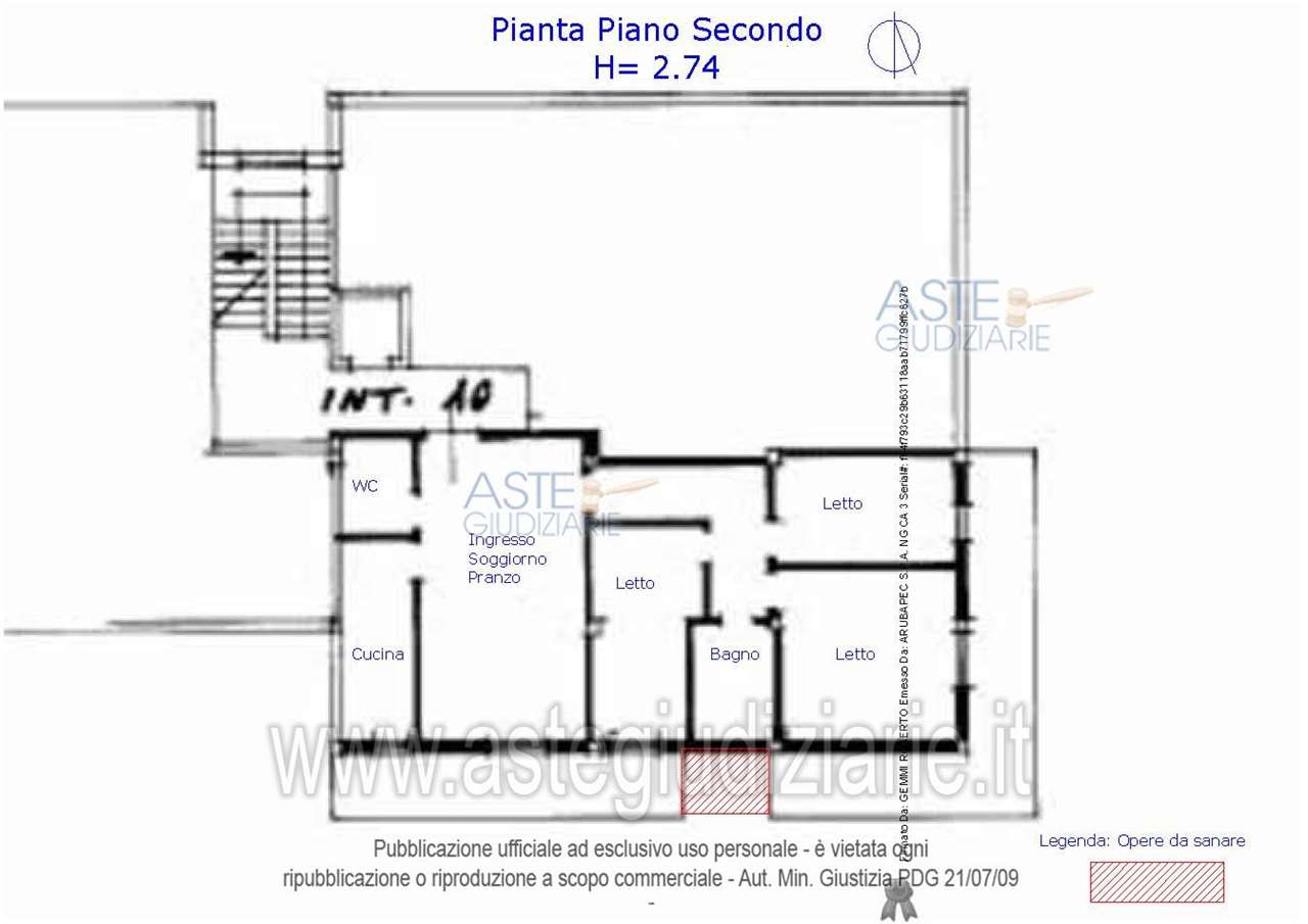 L'appartamento, in discreto stato conservativo si compone di ingresso, soggiorno/sala da pranzo, cucina, tre camere da letto, un disimpegno, due bagni e balcone della superficie di mq. 34 circa.