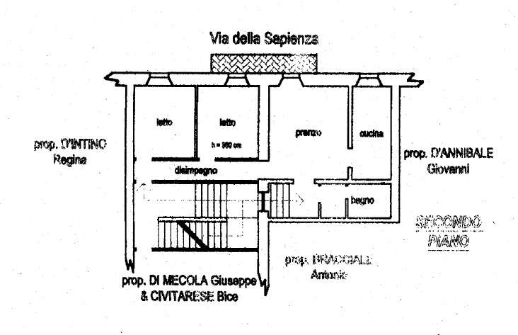 LOTTO UNICO APPARTAMENTO posto al piano secondo di edificio ad uso residenziale sito nel COMUNE DI ORTONA al Corso Vittorio Emanuele II. Totale escluse aree scoperte mq 79. Confinante con vano scala, proprietà xxx, distacco su Via Sapienza, salvo altri. (Note Le planimetrie catastali “non identificano” esattamente lo stato dei luoghi. Allo stato attuale la ripartizione interna presenta difformità rispetto alle planimetrie in atti presso l’Agenzia delle Entrate – Sezione Territorio. Allegata alla perizia la planimetria opportunamente quotata al fine di permettere la presentazione di denuncia di variazione in catasto fabbricati per “diversa distribuzione degli spazi interni”. Inoltre, si dovrà provvedere a regolarizzare la situazione urbanistica/edilizia con una presentazione di una Comunicazione Inizio Lavori Asseverata (C.I.L.A.) “in sanatoria” per opere interne non riguardanti parti strutturali dell’edificio).