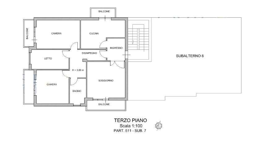 Diritti di piena proprietà 1/1 su un appartamento sito al piano terzo di un fabbricato di maggiore consistenza sito nel comune di teramo (te) in via ponte san ferdinando con annesso fondaco al piano seminterrato e piccola area di corte esterna esclusiva al piano terra.
