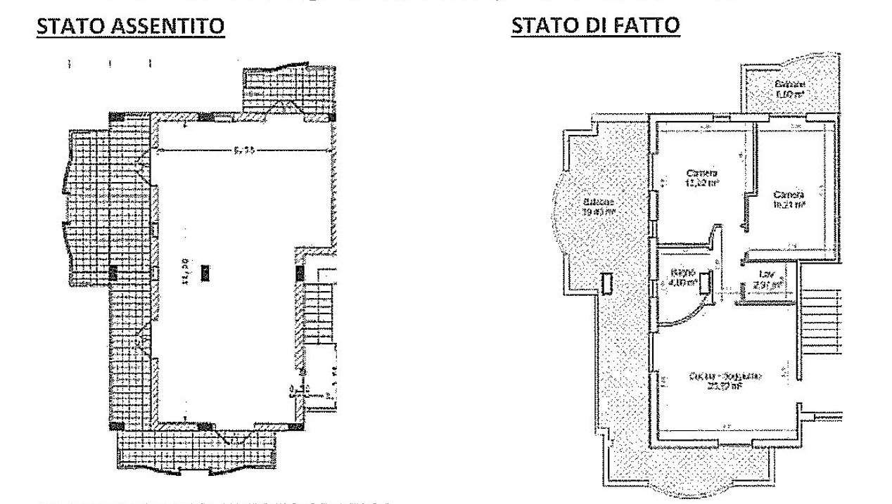 L’immobile è attualmente nella disponibilità del debitore, non essendo stato emesso provvedimento di rilascio, l’immobile presenta difformità per variazione di destinazione d’uso e difformità riscontrate sui lati a confine per i balconi, di dimensioni maggiori rispetto alle autorizzazioni, per i quali sarà necessario il ripristino dello stato dei luoghi, con demolizione degli spazi eccedenti.