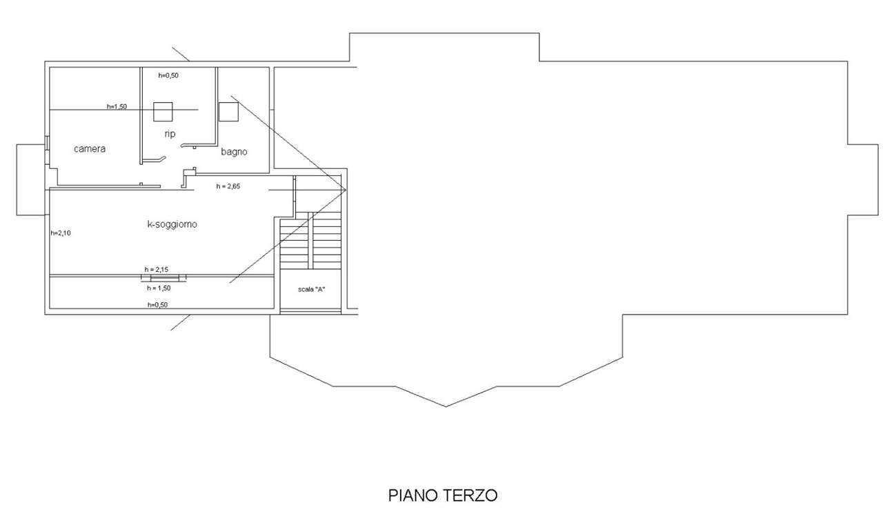 Appartamento di civile abitazione posto al piano terzo di un fabbricato sito nel Comune di Bellante, località Stazione, Via Tom Di Paolantonio. Sono annessi garage che funge anche da cantina oltre a piccola esterna adibita a posto auto. L’appartamento mansardato si compone di ingresso-soggiorno-cucina, una camera, un disimpegno, un ripostiglio e un bagno, oltre a piccolo balcone sul lato verso ovest. L'appartamento presenta un'altezza variabile da mt. 0,5 e mt. 2.15 ai lati con il colmo di mt. 2,65