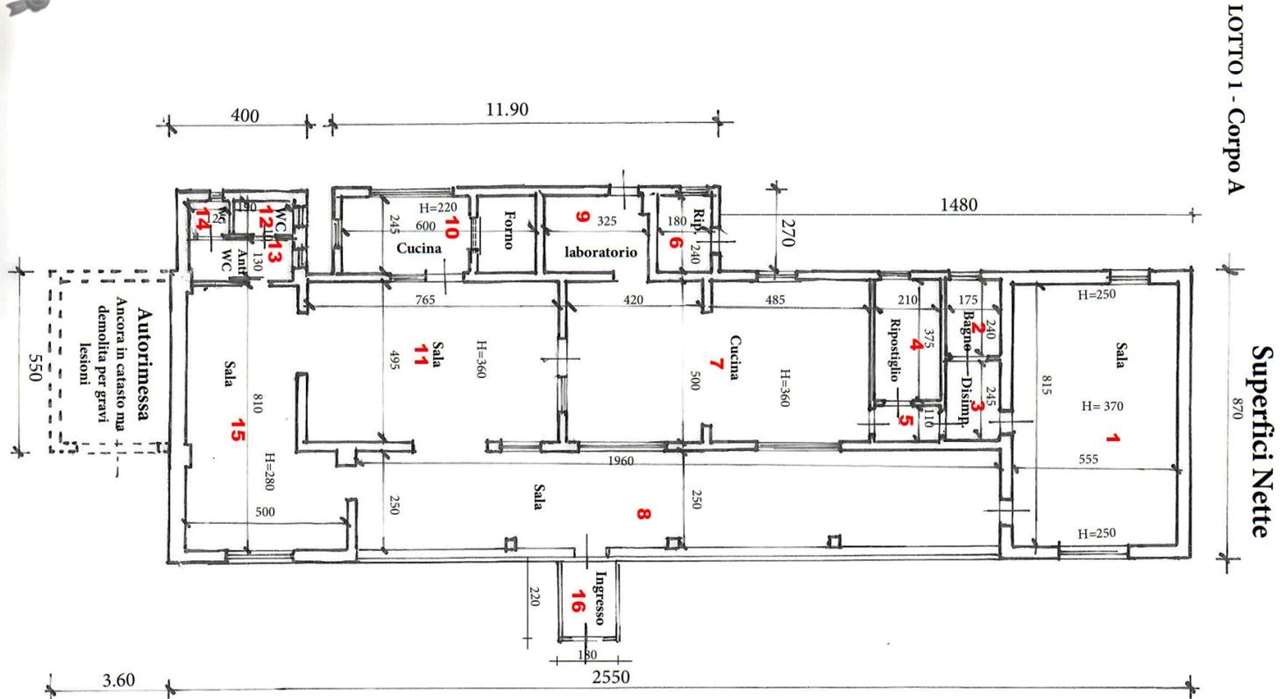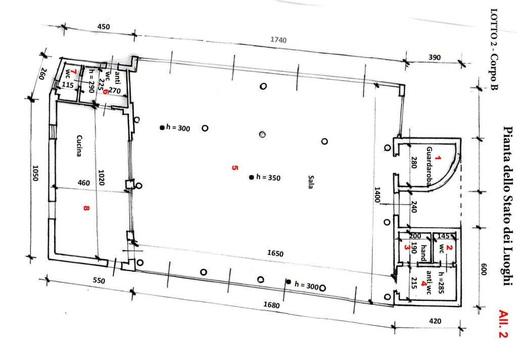 Piena proprietà della quota di 1000/1000 del compendio immobiliare, ad uso attività commerciale... Il compendio immobiliare è costituito da due corpi di fabbrica, con corte pertinenziale esclusiva, così composto: Corpo A - Struttura portante di muratura squadrata e blocchi in calcestruzzo, un solo piano terra con controsoffittature interne e con solaio di copertura in legno e tegolato in coppi e sottocoppi. È destinato a ristorante con più vani destinati a sala; è fornito di cucina con forno a legna, servizi igienici con antibagno per il pubblico e spogliatoio per il personale con disimpegno e w.c. a servizio del personale; Corpo B - Struttura portante di muratura squadrata e blocchi in calcestruzzo, in parte da struttura metallica ed in parte da struttura legno, un solo piano terra con solaio di copertura in legno e tegolato in coppi e sottocoppi. È destinato a ristorante con un’ampia sala e un piccolo guardaroba, cucina e servizi igienici con antibagno per il pubblico, e spogliatoio con w.c. a servizio del personale.