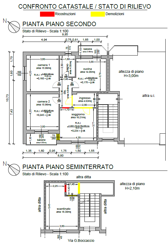 Diritto di proprietà per l'intero 1/1 gravante su: appartamento per uso civile sito a Nereto (Te) in via Giovanni Boccaccio n. 2, piano secondo oltre a locale fondaco.